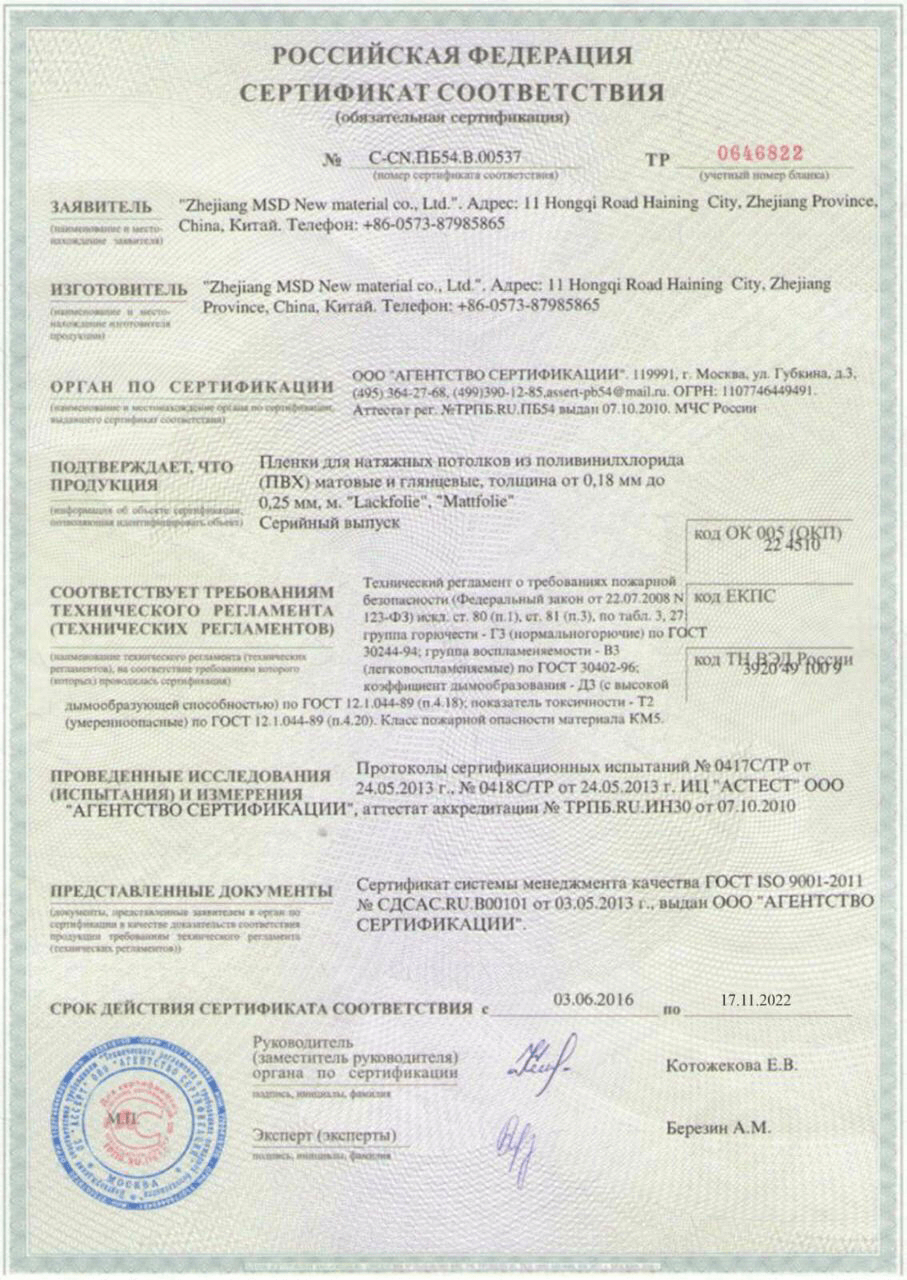 Продукция прошла процедуру сертификации и получила соответствующие документы